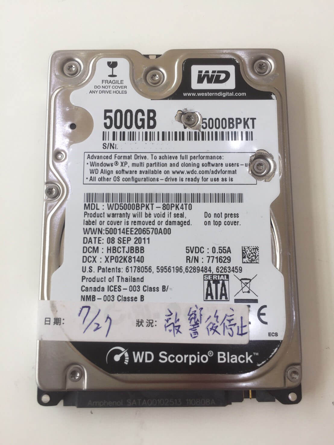 WD 500G 2.5吋硬碟(WD5000BPKT)硬碟資料救援
