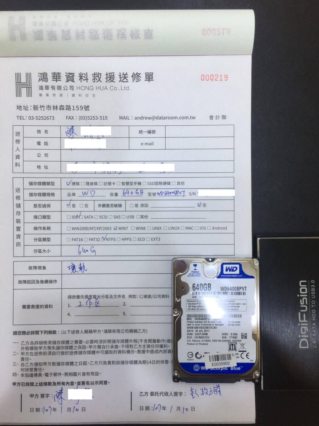 新竹 陳先生,WD 640G(WD6400BPVT)硬碟資料救援,